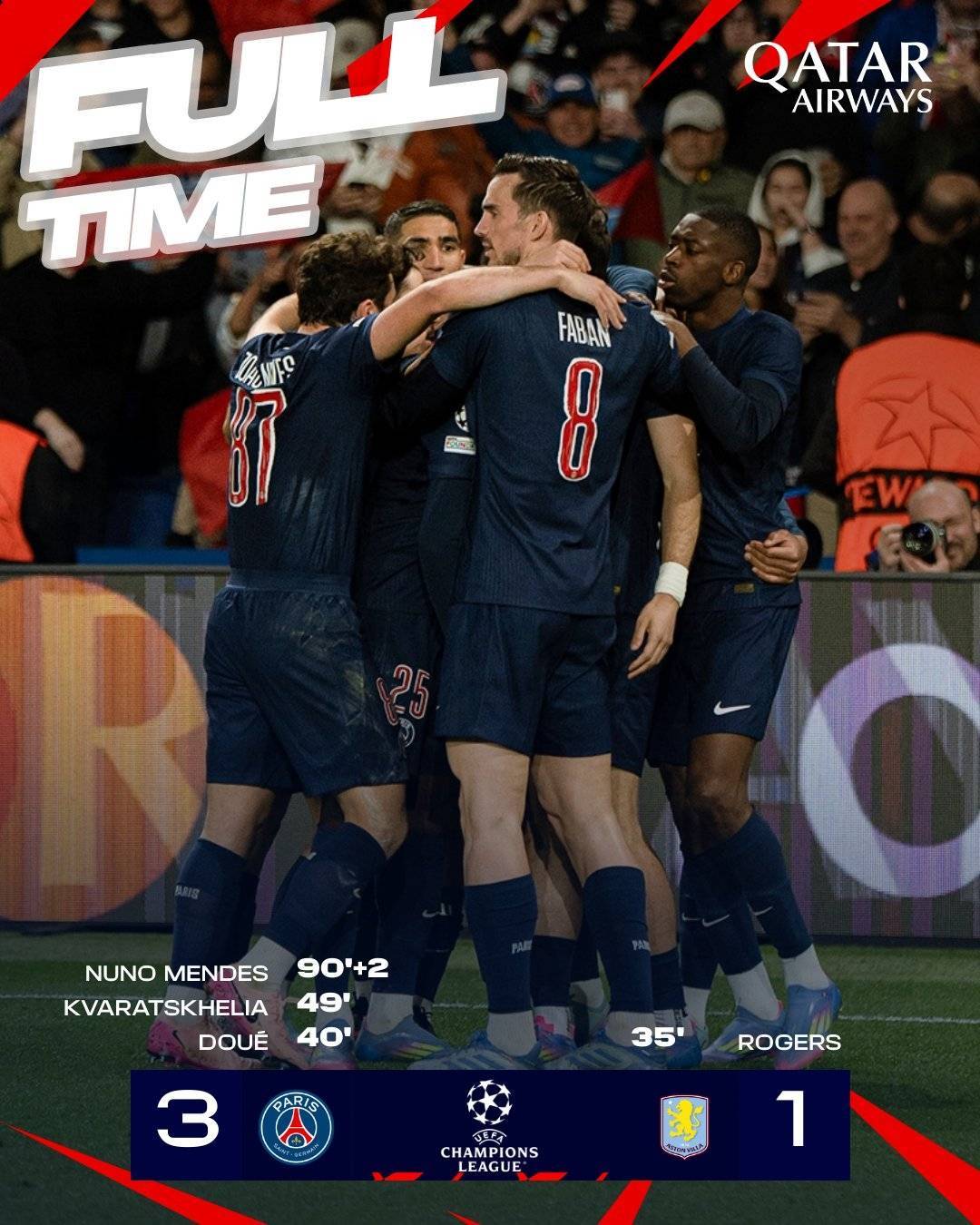 直播吧04月10日讯 欧冠1/4决赛首回合,巴黎3-1击败阿斯顿维拉,先下一城有望晋级4强。