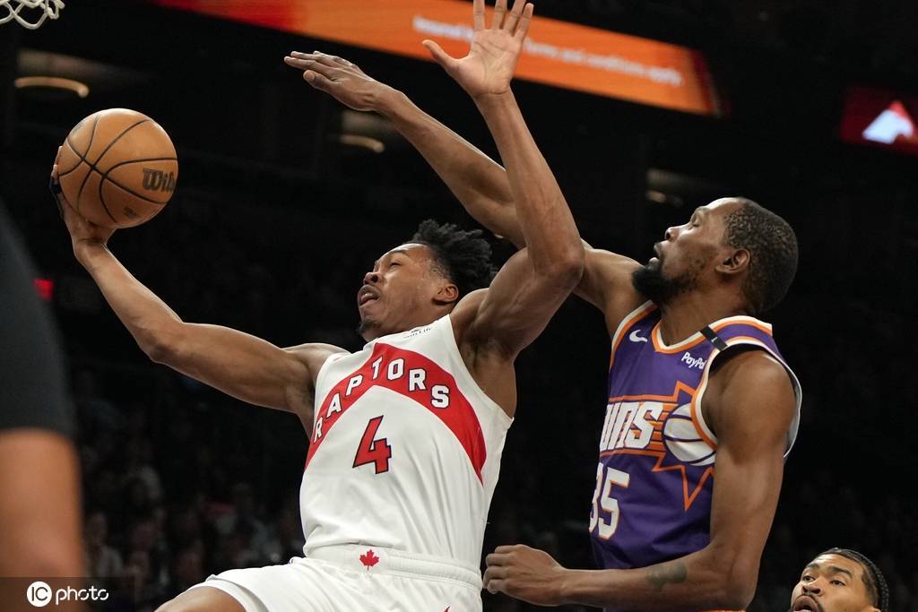 第三节,比赛开局,太阳队的手感略显沉闷,双方的分差一度缩小至19分。然而,随着比赛的深入,太阳队逐渐找回状态,接连打出一波攻击,最终将比分拉开到领先优势33分。尽管猛龙队在小节后段竭尽全力追赶,但最终还是以93-64落后结束第三节。